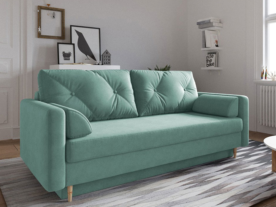 Pohovka trojsedačka Asial (zelená) je vysoká 74 cm a má hloubku 100 cm. Je vybavena kvalitním podpůrným mechanismem otevírání a nabízí plochu spaní o rozměrech 190 x 155 cm. Rám pohovky je vyroben z masivního dřeva a dřevotřísky, což zaručuje pevnost a stabilitu. Sedadlová část je vybavena bonellovou pružinou o tloušťce drátu 2,4 mm a pěnou T 30 o tloušťce 3 cm, což zajišťuje optimální komfort při sezení i spánku. Tato pohovka je skvělou volbou pro ty, kdo hledají spolehlivý a pohodlný nábytek pro svůj obývací prostor. Typ rozkladu je DL.