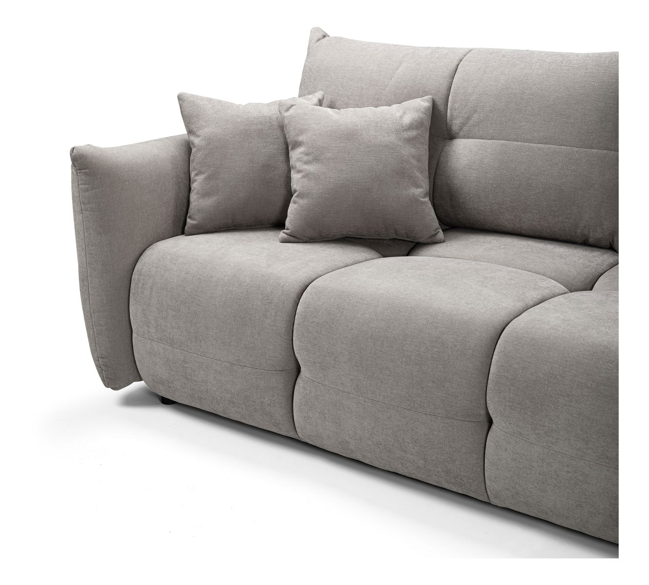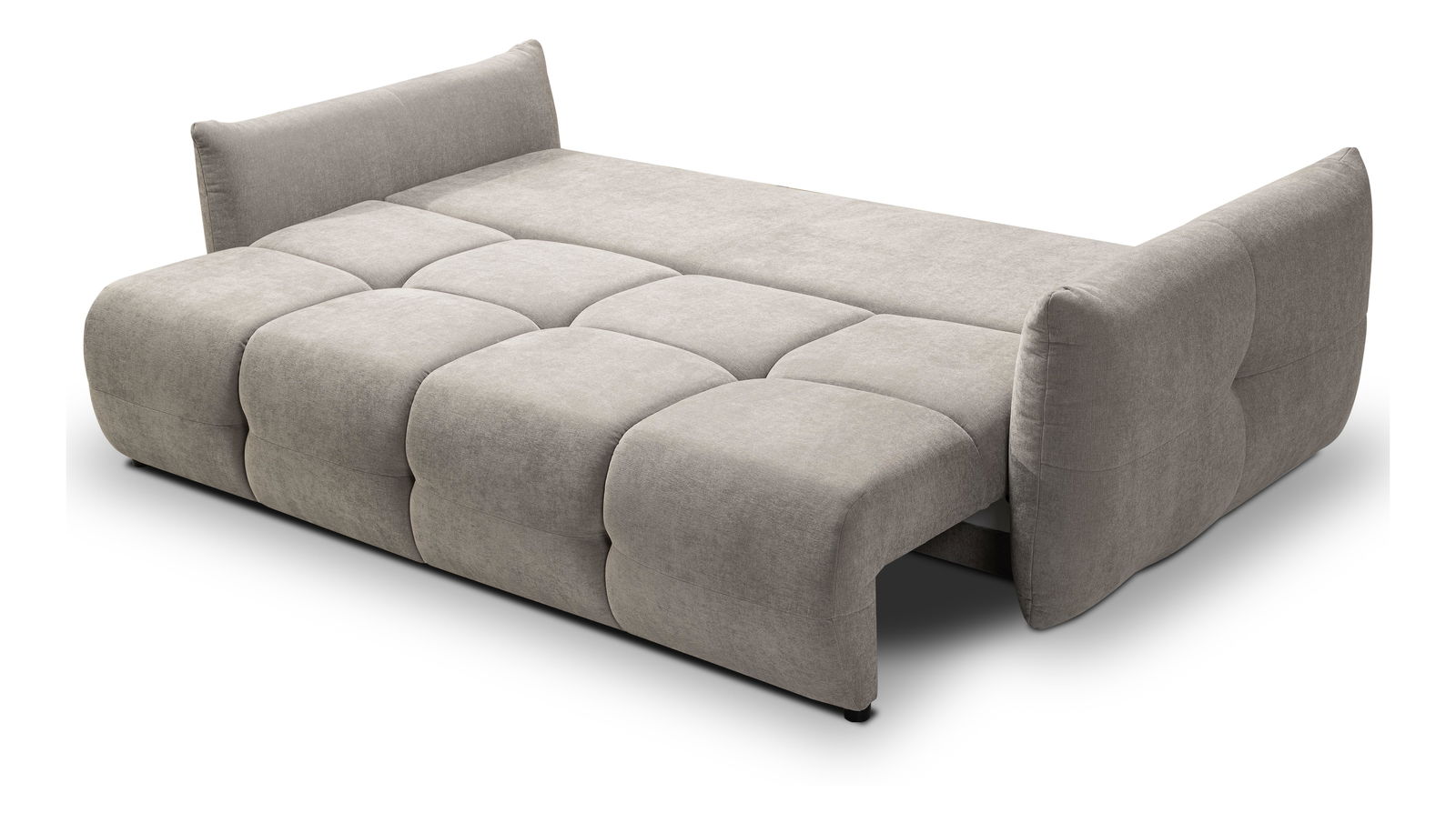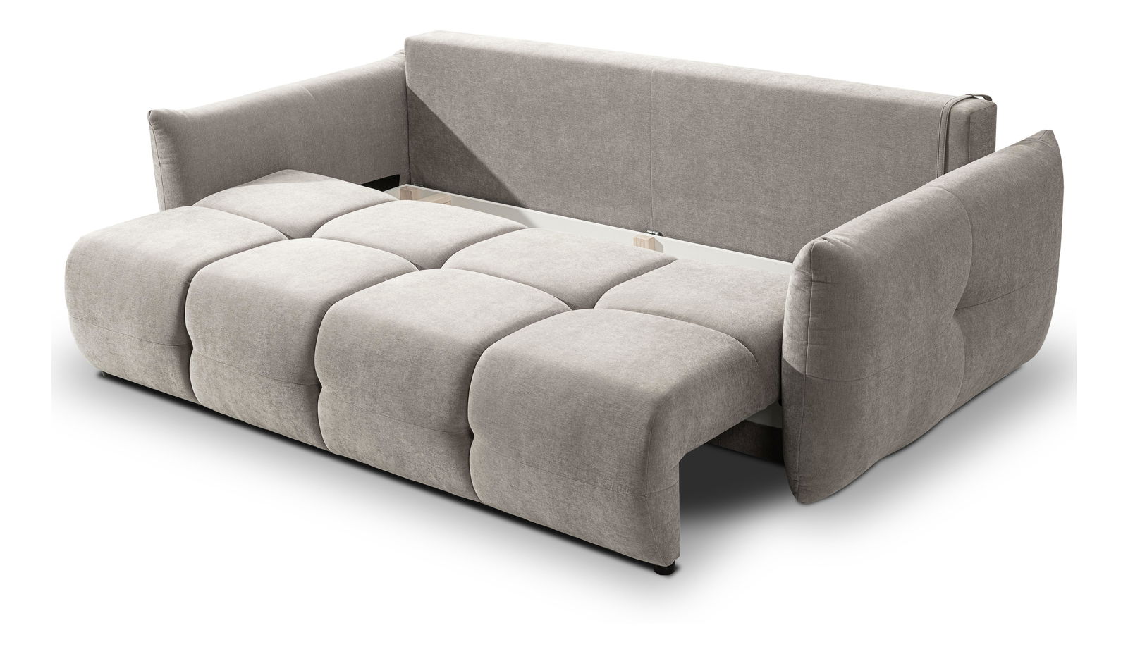 ZobrazitPohovka s konstrukcí z borovicového dřeva a dřevotřísky je navržena pro maximální pevnost a dlouhou životnost. Sedák je vyplněn PUR pěnou T-3042, což zaručuje vynikající komfort při sezení. Pohovka je rozkládací a nabízí plochu na spaní o rozměrech 144 x 200 cm, což je ideální pro hosty nebo příležitostné přespání. Výška sezení je 42 cm, hloubka sezení 63 cm a výška područky 67 cm, což poskytuje pohodlné a ergonomické sezení. Pohovka disponuje velkým úložným prostorem o rozměrech 197,6 x 67 x 18,5 cm, kde můžete uschovat ložní prádlo nebo jiné věci. Hřbet pohovky je potažen stejnou látkou, což dodává pohovce jednotný a elegantní vzhled. Nastavitelné opěrky hlavy a područky nejsou součástí této pohovky. Pohovka je vybavena plastovými nožičkami o výšce 3,5 cm, které zajišťují stabilitu. Typ rozkládání je DL automat a pohovka obsahuje také dva malé polštáře pro ještě větší komfort.