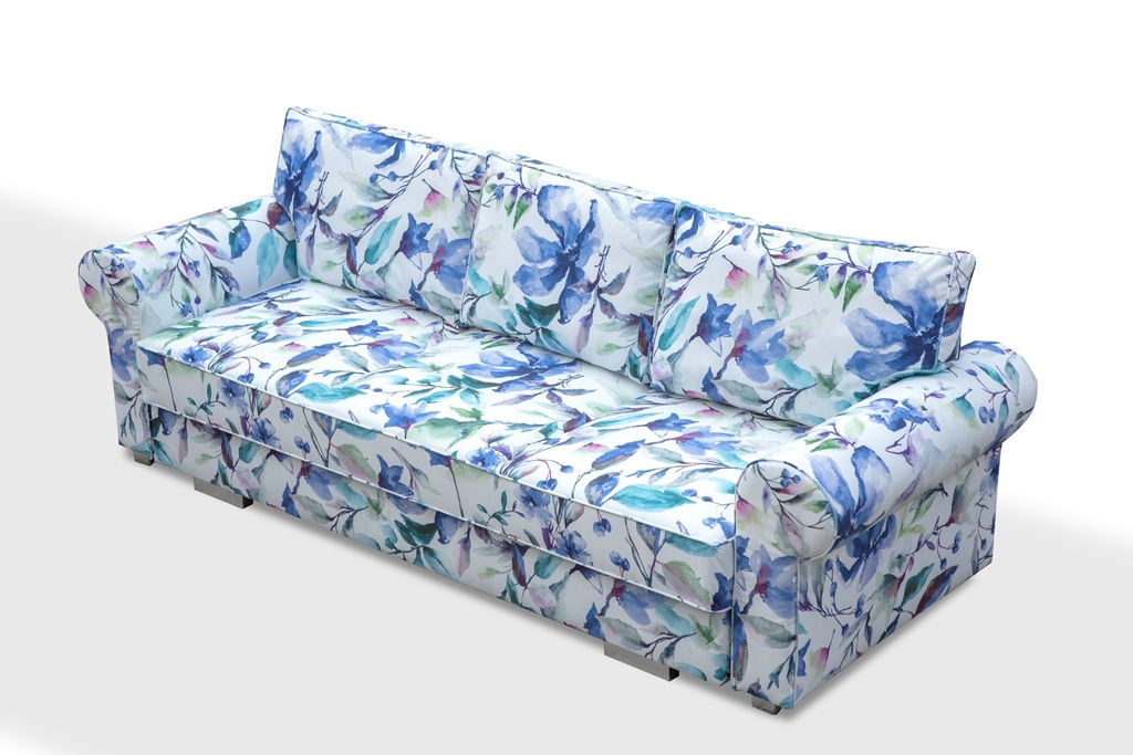 ZobrazitPohovka trojsedačka Bernadette v modro-bílém květinovém designu