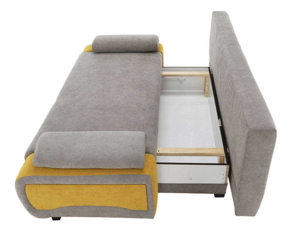 Trojsedačka Bralda v moderním žluto-šedém provedení je ideálním řešením pro každý obývací pokoj, kde se pojí styl s funkčností. Díky rozkládacímu mechanismu se z pohodlné úložným prostorem na postel praktického uskladnění.