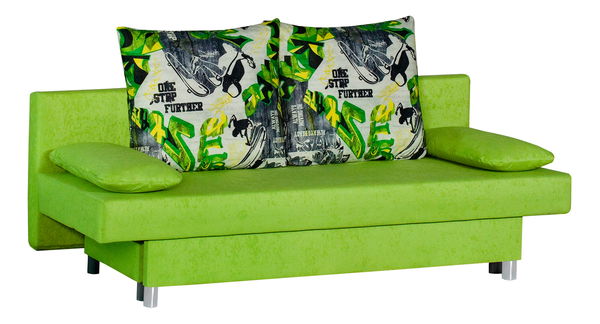 Jednoduchý, ale designově atraktivní 3-sed šedé barvy, můžete využít ať už v obývacím pokoji, tak i dětském či studentském, v pracovně či kanceláři. Jednobarevné čalounění je doplněno o vzorované polštáře, které slouží jako opěrka zad. Místo područek jsou tu ještě dva menší polštáře. V případě, že chcete příležitostně na sedačce přespat, jednoduchým pohybem ji rozložíte. Poskytuje i praktický úložný prostor.