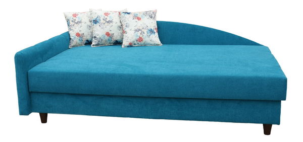 Celočalouněná jednolůžková postel s úložným prostorem v barevném provedení modrá je určena pro každodenní spaní. Komfortní spánek zaručuje molitanové jádro s kvalitními pružinami. Součástí postele jsou i tři dekorační polštáře. Možnost výběru pravého nebo levého provedení.