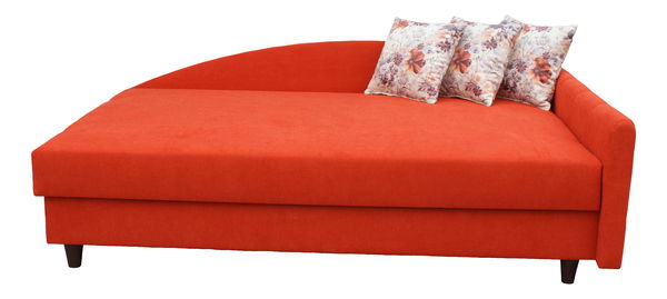 Celočalouněná jednolůžková postel s úložným prostorem v barevném provedení oranžová je určena pro každodenní spaní. Komfortní spánek zaručuje molitanové jádro s kvalitními pružinami. Součástí postele jsou i tři dekorační polštáře. Možnost výběru pravého nebo levého provedení.