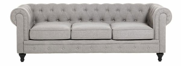 Tato pohovka v klasickém stylu Chesterfield dodá vašemu domovu eleganci. Nadčasový design pohovky je charakteristický prošívaným čalouněním s knoflíky, tvarovanými nohama z eukalyptového dřeva, zaoblenými bočními opěrkami a hrubými sedadly, které nabízejí pohodlí a sofistikovaný vzhled. Díky snímatelným potahům na polštářích je čištění případných skvrn jednodušší. Tradiční design s moderním nádechem činí z této pohovky nadčasový doplněk vašeho domova.