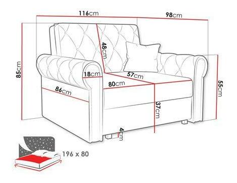Rozkládací pohovka s funkcí spánku. Je to malý kus nábytku, který bude vhodný i do menších pokojů. Pohovka je vybavena praktickým úložným prostorem.