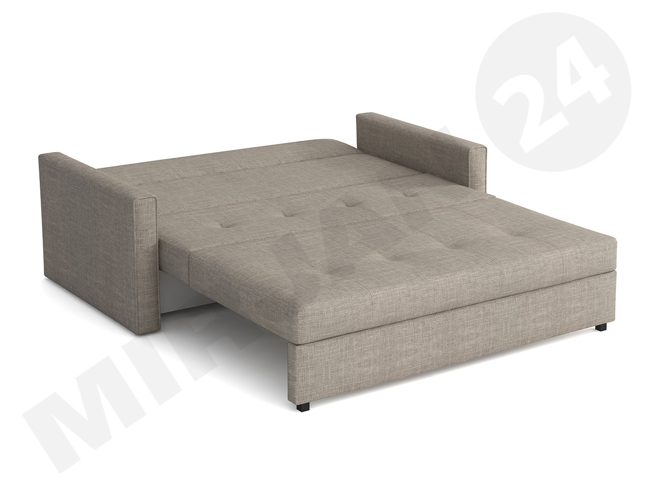 Pohovka vyrobena z LTD + borovicové dřevo. Výplň pohovky jsou vlnité pružiny + pěna T25 / 42. Pohovka má úložný prostor a Funck rozložení. Kovové nožičky jsou v černé barvy. Čalouněná opěrka je natrvalo připevněna. V ceně je zahrnut jeden polštář, který není na zip. Zadní část sedačky je čalouněná.