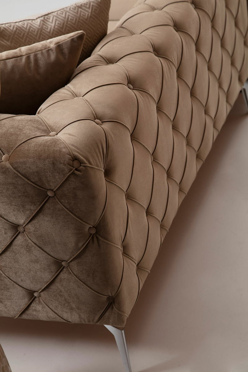 Pohovka Collo v hnědé barvě je skvělou volbou pro každého, kdo hledá pohodlný a elegantní kus nábytku do svého domova S výškou 72 cm, šířkou 344 cm a hloubkou 90 cm, tato pohovka nabízí dostatek místa pro sezení pro celou rodinu nebo návštěvy. ze kterého je vyrobena - bukové dřevo a dřevotříska - zajišťuje odolnost a trvanlivost, což znamená, že tato pohovka bude sloužit mnoho let. Kromě toho, její elegantní a moderní design se hodí do jakéhokoli interiéru a přinese do vašeho domova pocit útulnosti a pohodlí.