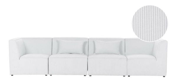 Vytvořte si stylový obývací pokoj s touto moderní pohovkou. Manšestrové čalounění je měkké na dotek a vyznačuje se nápadnou vroubkovanou texturou, díky které vypadá elegantně. Stabilitu pohovky zaručují nohy vyrobené ze syntetického materiálu. Pohovka se skládá ze 2 rohových modulů, které lze spojit do jednoho celku nebo použít samostatně a vytvořit jiné uspořádání.