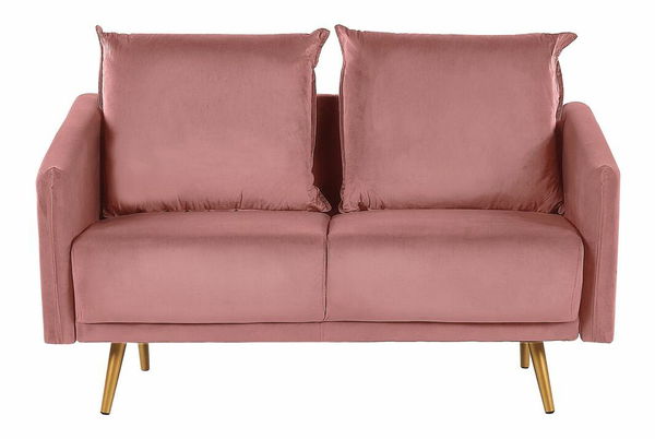 Neuvěřitelný komfort, na omak jemné čalounění a stylové provedení – to vše nabízí tato růžová pohovka. Sedací část a opěradla jsou vyplněna kapesními pružinami, které umožňují dlouhý a ničím nerušený odpočinek. Pohovka se sametovým čalouněním a zlatým kovovým nohama dokonale doplní obývací pokoj zařízený ve stylu glamour, ale i interiéry zařízené v retro či boho stylu.