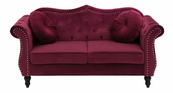 Vylepšete svůj interiér touto elegantní a okouzlující pohovkou. Má prošívané opěradlo a boční opěrky ozdobené kovovým lemováním a je opravdu jedinečným kouskem, který pozvedne vzhled každého prostoru. Design inspirovaný retro a vintage stylem se hodí do jakéhokoli obývacího pokoje či kanceláře. Pohovka je vyrobena z vysoce kvalitních materiálů, je neuvěřitelně odolná a čalouněná jemným sametem. Pevné dřevěné nohy zaručují stabilitu nábytku. Součástí pohovky jsou dva polštáře, které mají snímatelné potahy a lze je jednoduše vyčistit, takže se nemusíte obávat případných skvrn.