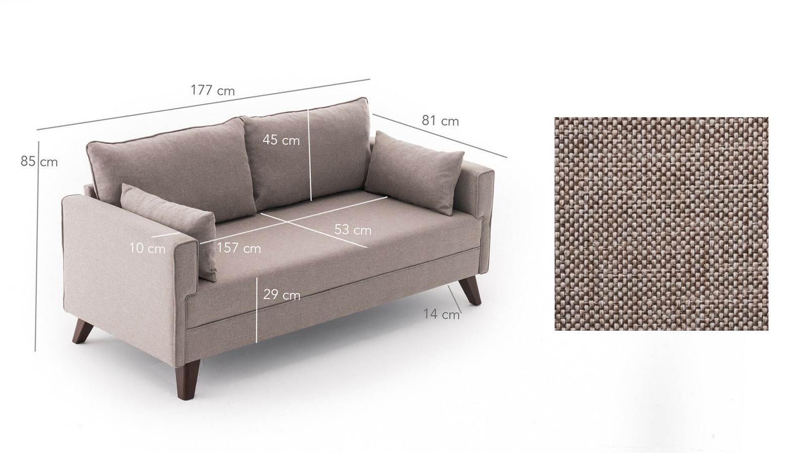 ZobrazitPohovka dvoused - Bellina (béžová) nabízí elegantní a moderní design pro Váš obývací prostor. S výškou 85 cm, šířkou 177 cm a hloubkou 81 cm poskytuje dostatek místa k sezení pro dvě osoby. Materiálové složení zahrnuje dřevo a MDF, čímž zaručuje dlouhou životnost a odolnost nábytku. Barva béžová dodává pohovce jemnost a vkusný vzhled. Tato pohovka je ideální volba pro ty, kteří hledají spojení kvality, pohodlí a stylu pro svůj domov.