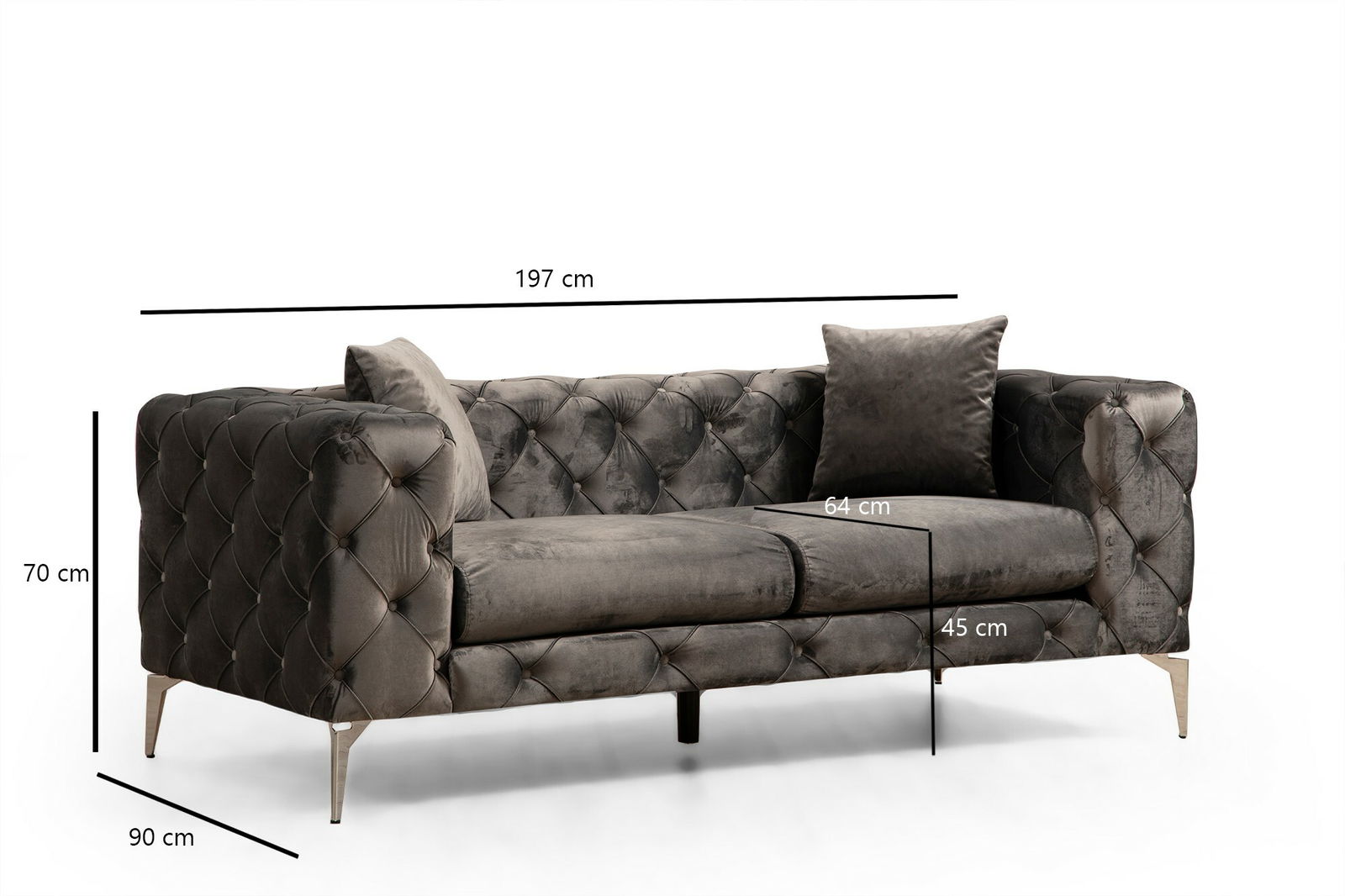 Pohovka dvojsed Collo (antracit) je ideální volbou pro moderní interiér. S výškou 73 cm, šířkou 197 cm a hloubkou 90 cm poskytuje dostatek místa pro pohodlné sezení pro dvě osoby. Materiál z bukového dřeva a dřevotřísky zaručuje stabilitu a odolnost, zatímco jemné linie vytváří elegantní a sofistikovaný vzhled. Barva antracitu se dobře hodí do každého designu interiéru a zvýrazní vaši osobnost a vkus. Pohovka Collo je prostě skvělá volba pro ty, kteří hledají kvalitní a pohodlné sezení pro dvě osoby s moderním designem.