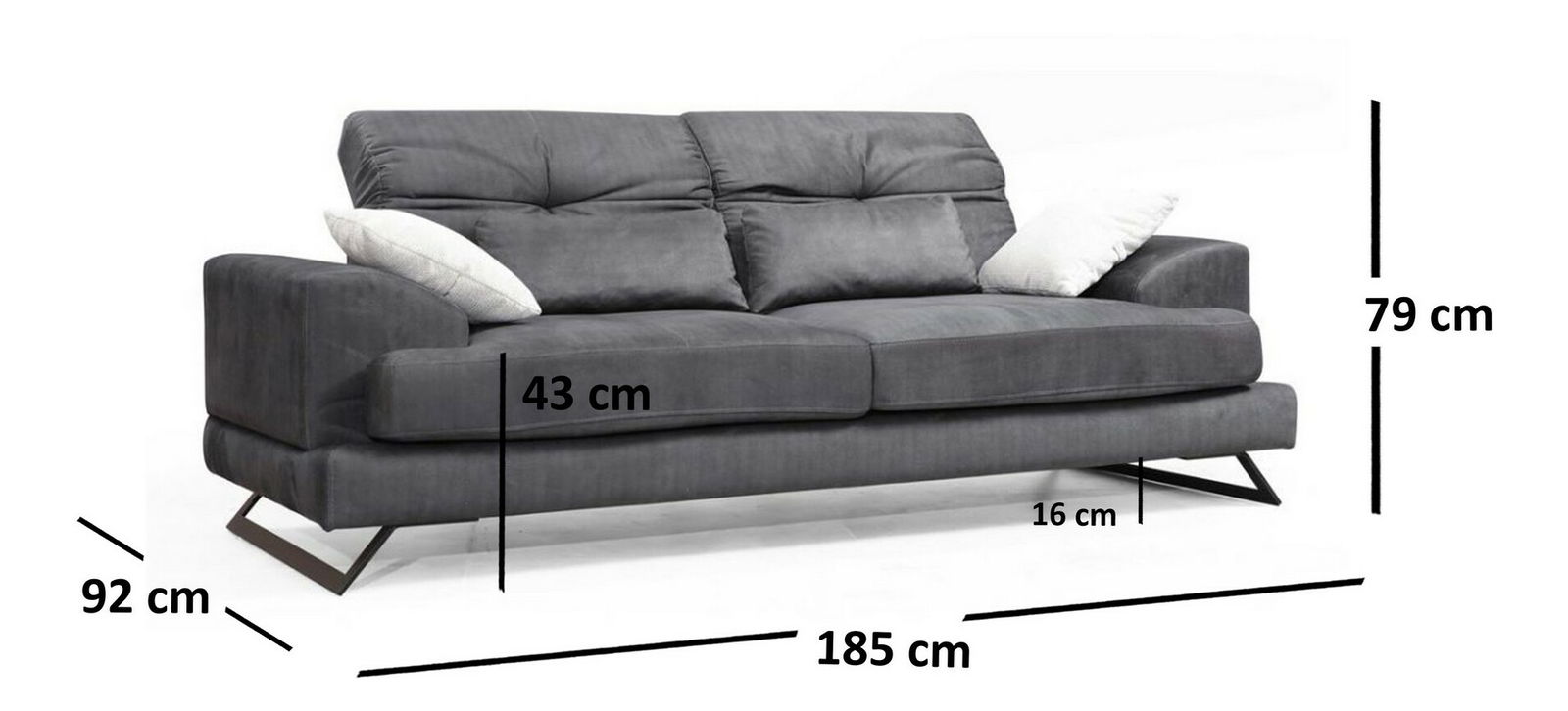 ZobrazitPohovka dvoused Frilana (antracit) o výšce 79 cm, šířce 185 cm a hloubce 92 cm je ideální volbou pro ty, kteří hledají spolehlivý a pohodlný kousek nábytku. Je vyrobena z kvalitního bukového dřeva a dřevotřísky, které zaručují její pevnost a odolnost. Antracitová barva dodává pohovce stylový a elegantní vzhled, který se hodí do každého moderního interiéru. Pohovka nabízí dostatek místa pro sezení a její základní konstrukce zaručuje pohodlné uchycení. Frilana dvojsed nabízí neodolatelné spojení komfortu a designu, které se stanou skvělým doplňkem vašeho obývacího prostoru.