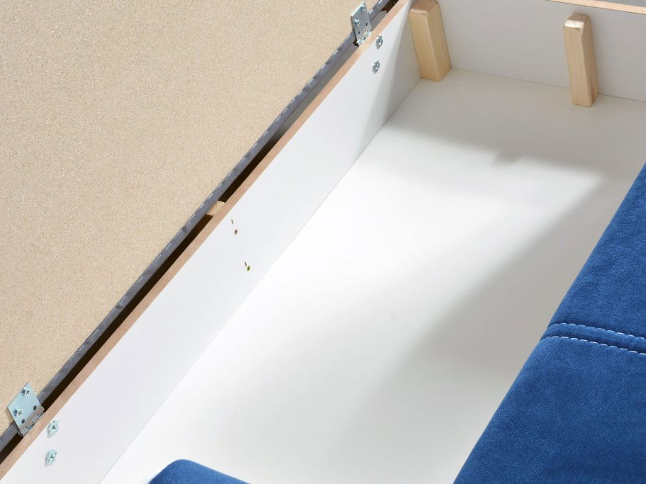- Modrá barva s bílým lemováním je univerzální a snadno se kombinuje s různými styly – od minimalistického, přes skandinávský až po industriální interiér.