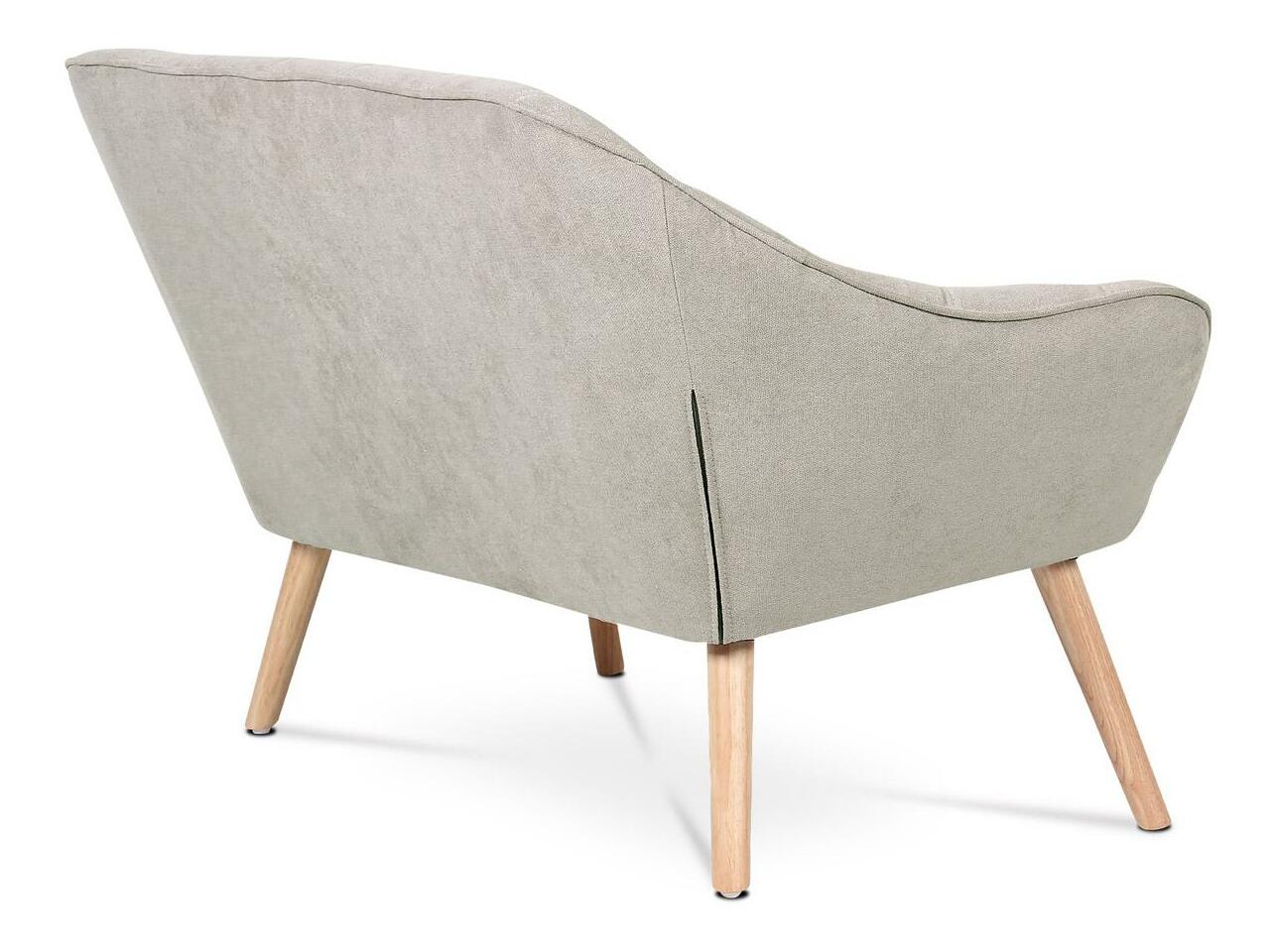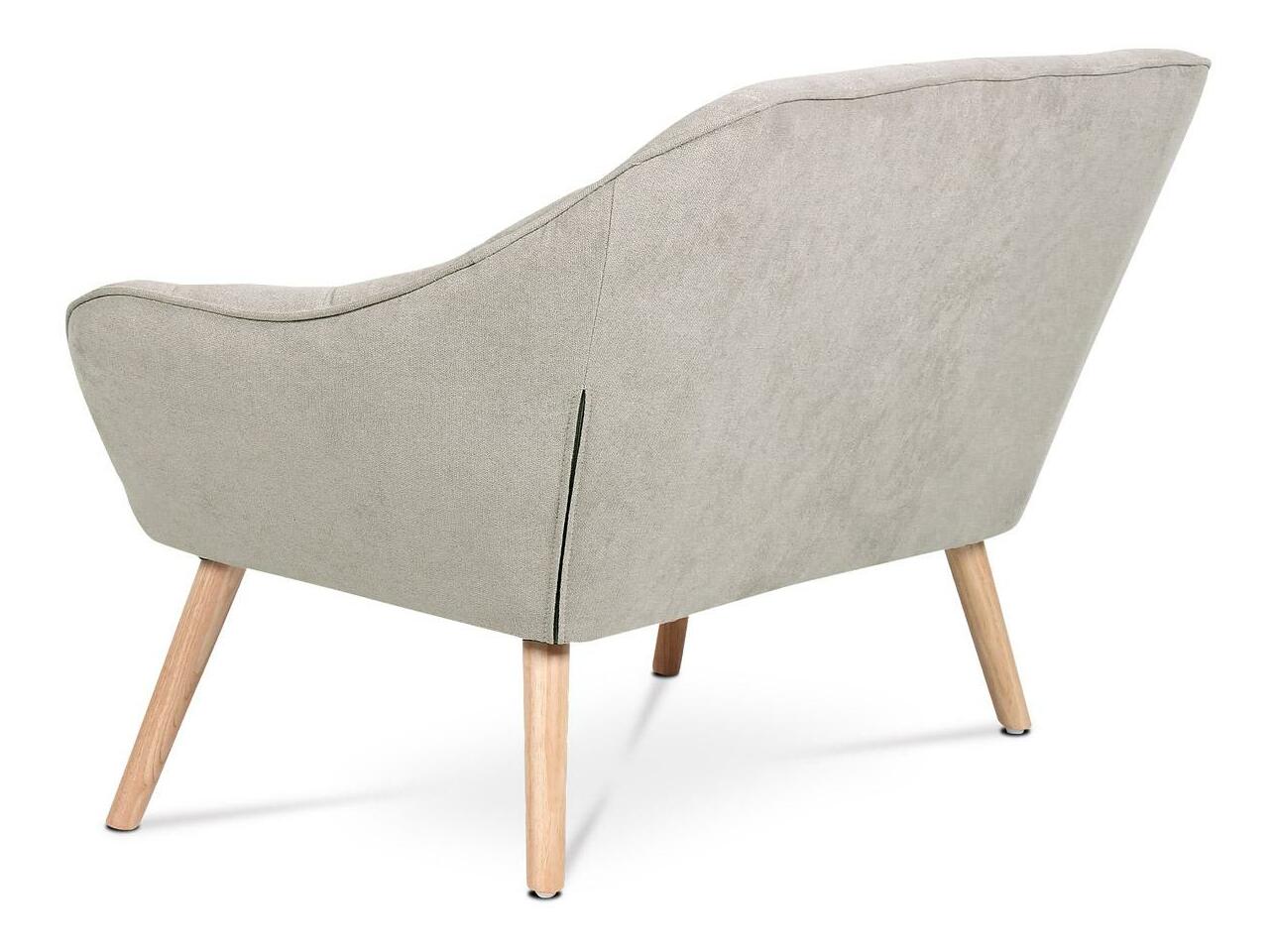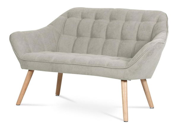 Dvoumístná sedačka ve skandinávském stylu s kubistickými prvky. Charakteristickými prvky této dvojsedačky je výrazné čtvercové prošití sedáku i opěradla, masivní sedací korpus s ostrými liniemi v kontrastu s vysokými štíhlýma nohama. Sedačka je celočalouněná, včetně zad. Lze ji použít jak pro přisazení ke stěně, tak i ve středu místnosti. Může sloužit jako výrazný solitér, nebo s křesly jako sedací souprava. Své uplatnění najde v chodbě, hale, obýváku i ložnici. Potah je z látky v trendy stříbrnobéžovém odstínu, kostra z masivního dřeva, vyplněno je kvalitní PU pěnou. Sedáky jsou ještě zpevněny elastickými popruhy pro zvýšení komfortu pohodlí. Štíhlé kónické nohy jsou z masivního kaučukovníku v přírodním odstínu a lakovány transparentním lakem. Poškození podlahových krytin je eliminováno plastovými kluzáky, u zadních nohou jsou rektifikovatelné (výškově nastavitelné). Světlá výška sedačky je 30 cm, výška područek je 59 cm a šířka 10 cm. Nosnost je 150 kg. Pohodlí a vnitřní prostornost této sedačky ocení jistě každý. A pokud si ještě opřete ruce o zvýšené područky nebo si lehnete, budete dlouho otálet, než sedačku opustíte. Sedačka se typově hodí ke křeslu AK-321.