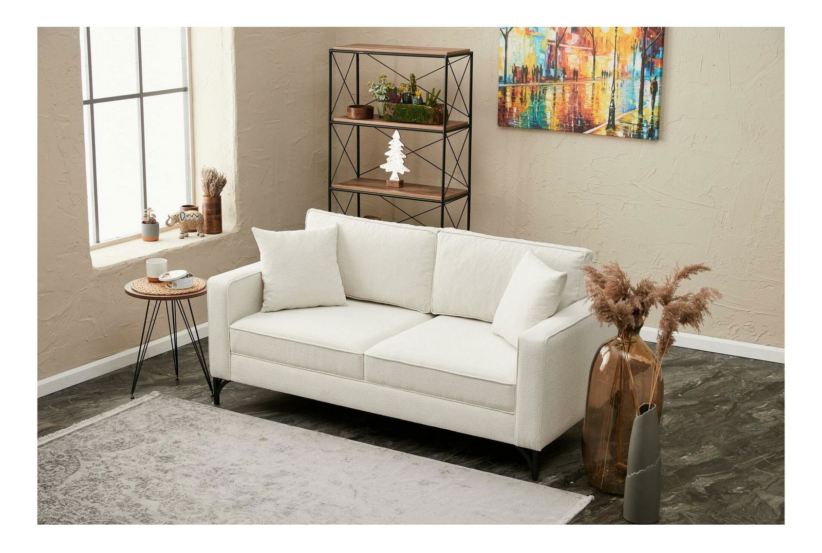 Pohovka dvousedačka Berlunetta (krémová + černá)
