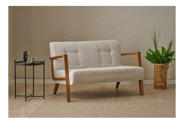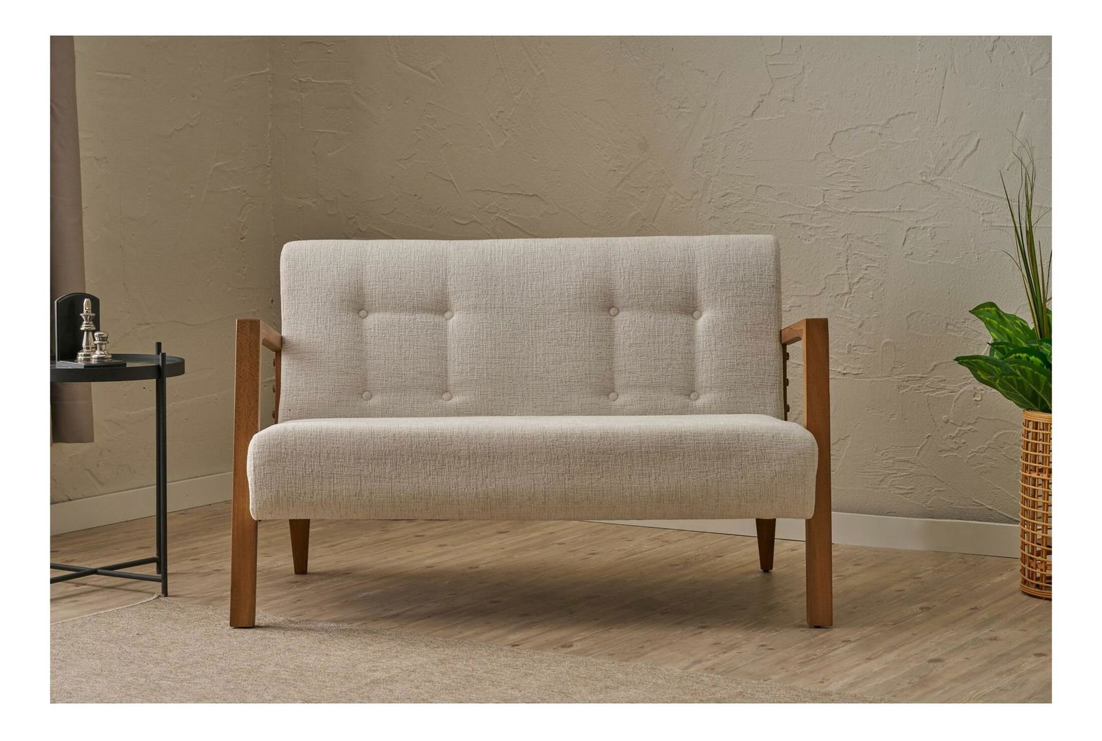 Tento produkt je vyroben z tkaniny az bukového dřeva. Jeho rozměry jsou šířka 114 cm, výška 80 cm a hloubka 85 cm, což z něj činí ideální doplněk pro vaši domácnost.