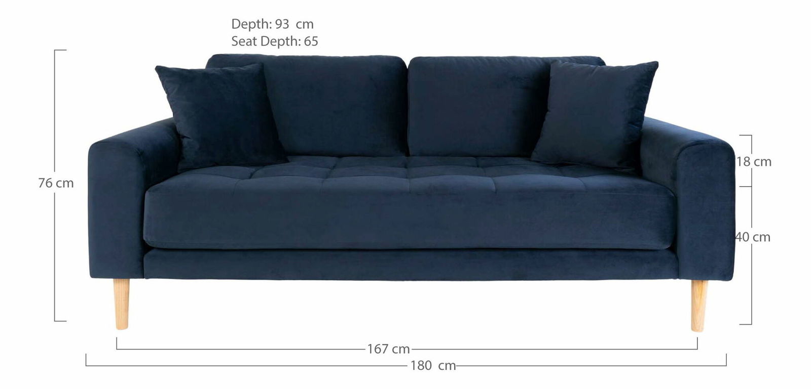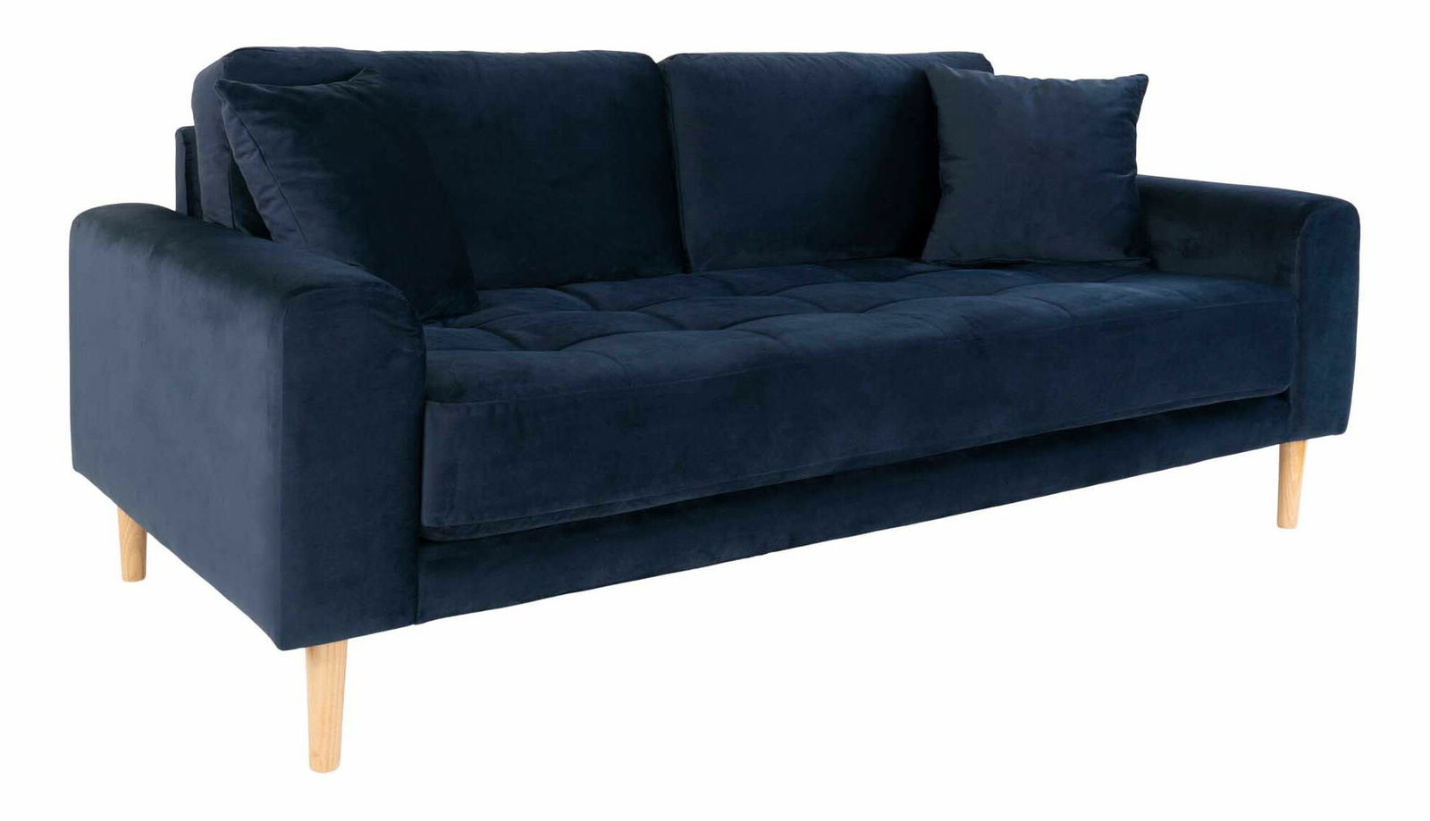 samet se dvěma polštáři a nohama z přírodního dřeva