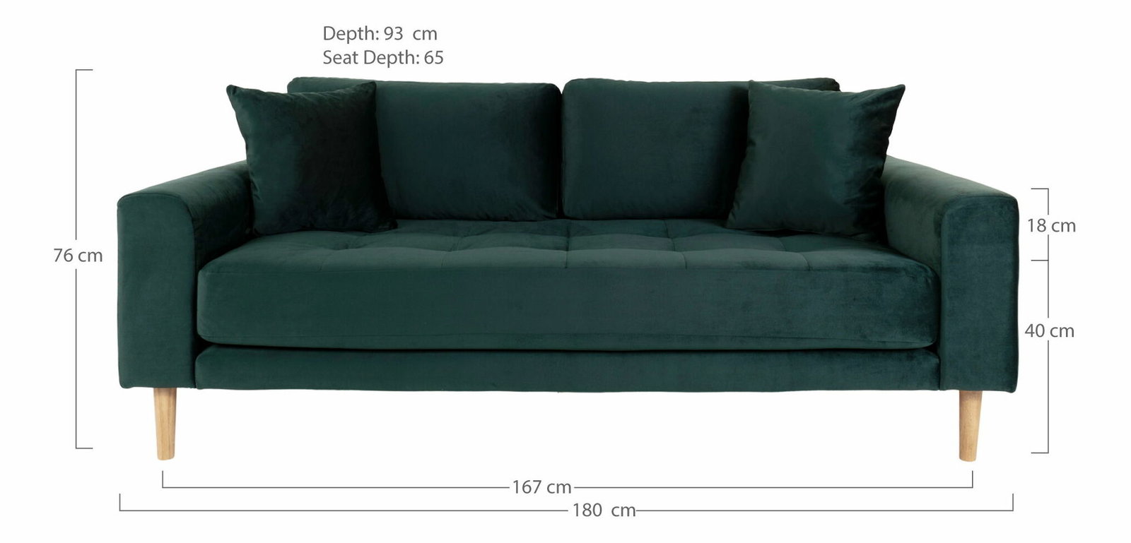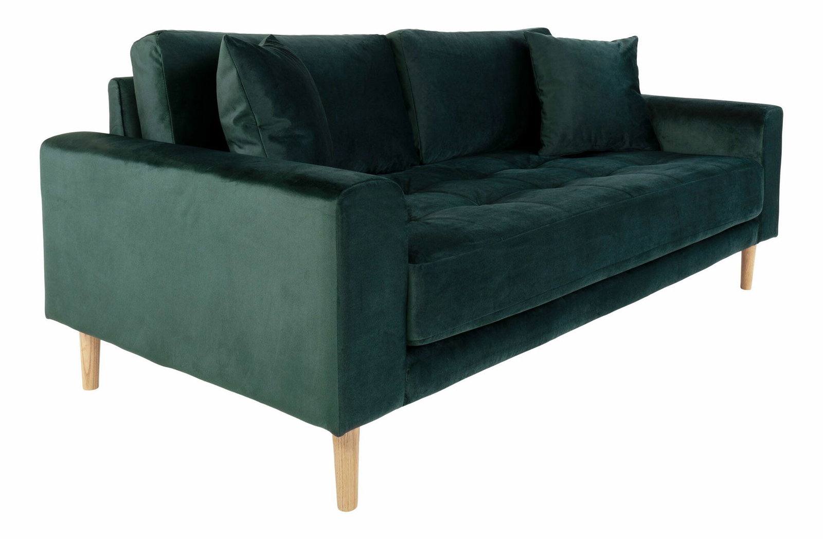 samet se dvěma polštáři a nohama z přírodního dřeva