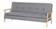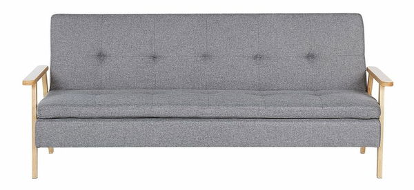 Tato pohovka je praktickým a zároveň stylovým doplňkem každého moderního obývacího pokoje. Díky svému modernímu a jednoduchému designu se dokonale hodí do minimalistických a tradičně zařízených interiérů. Je čalouněná pevným a zároveň jemným polyesterem ve světle šedé barvě. Boční opěrky a nohy v barvě světlého dřeva jí dodávají nádech retro stylu. Pohovku lze jednoduše rozložit na pohodlnou postel nebo nastavit opěradlo do polohy, která vám vyhovuje.
