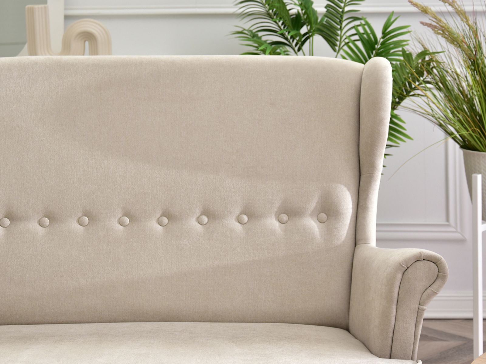 Pohovka dvousedačka ve tvaru ušák Muriera (písková + buk)