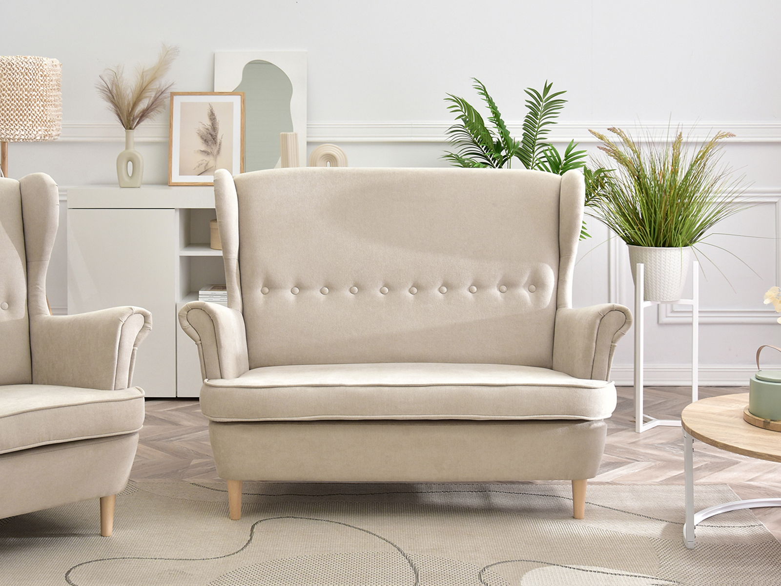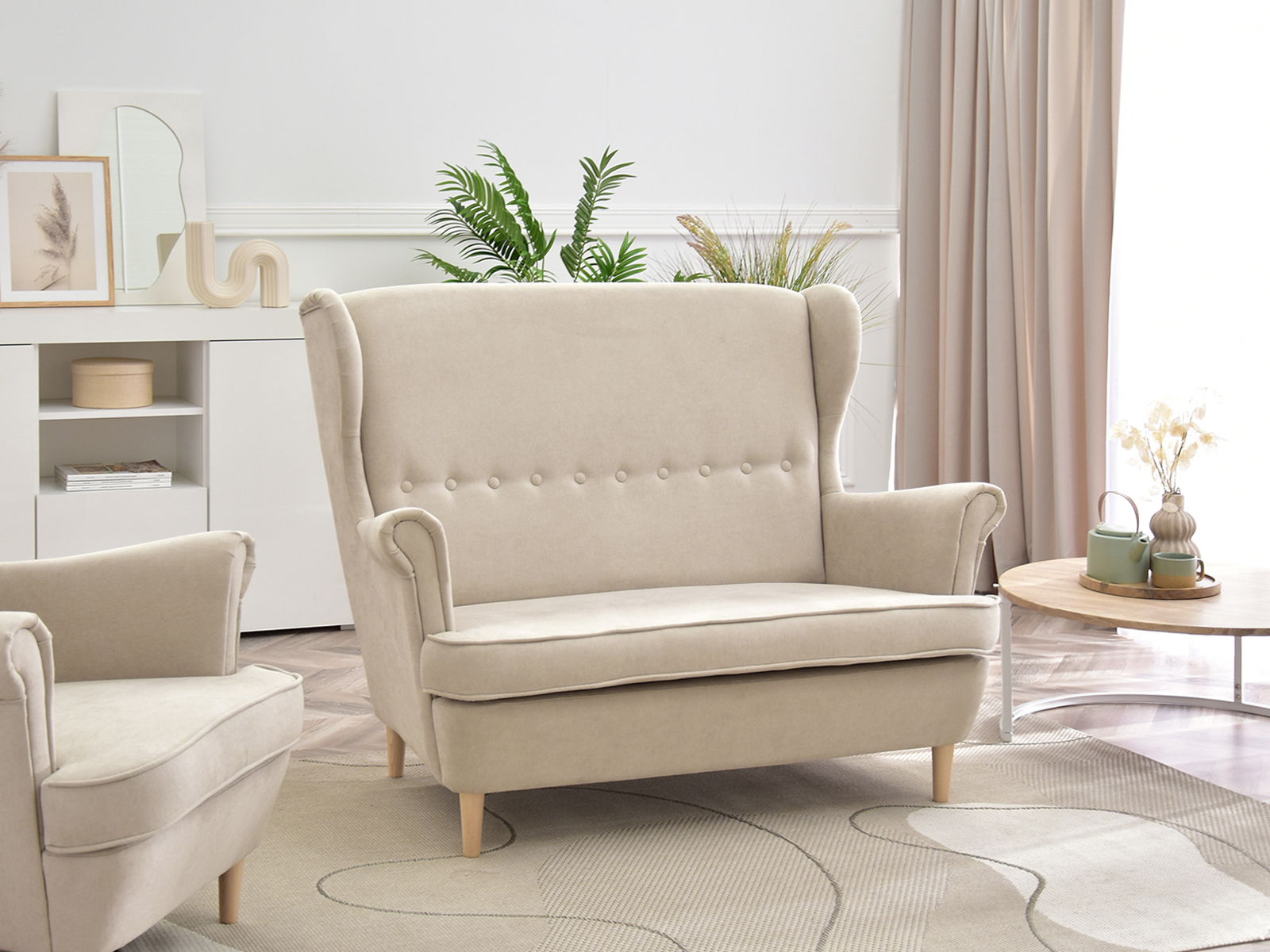 Pohovka dvousedačka ve tvaru ušák Muriera (písková + ořech)