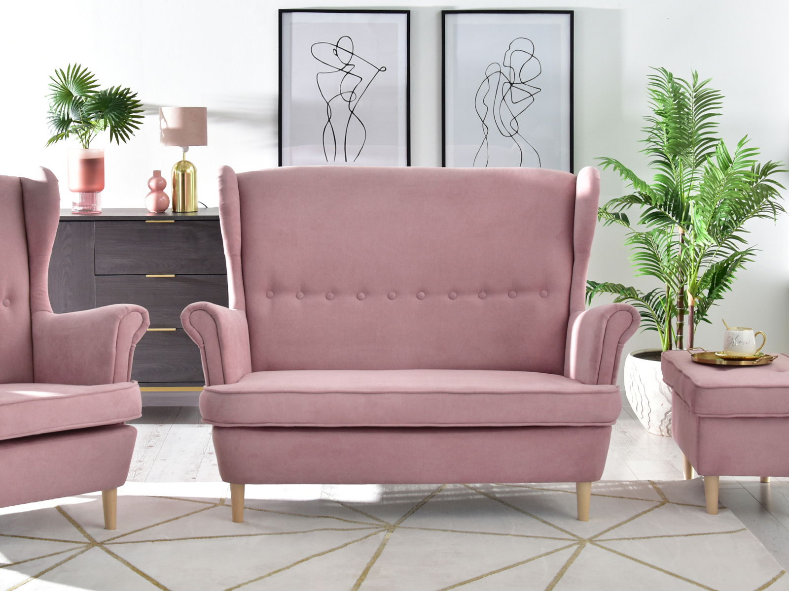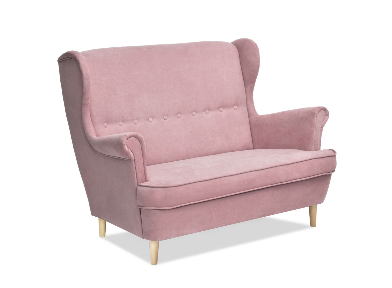 Pohovka dvousedačka ve tvaru ušák Muriera (pudrová + buk)