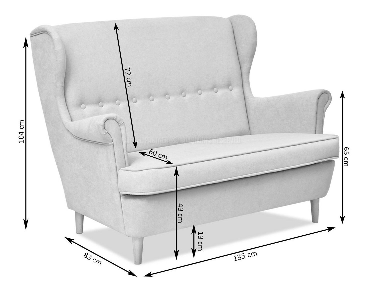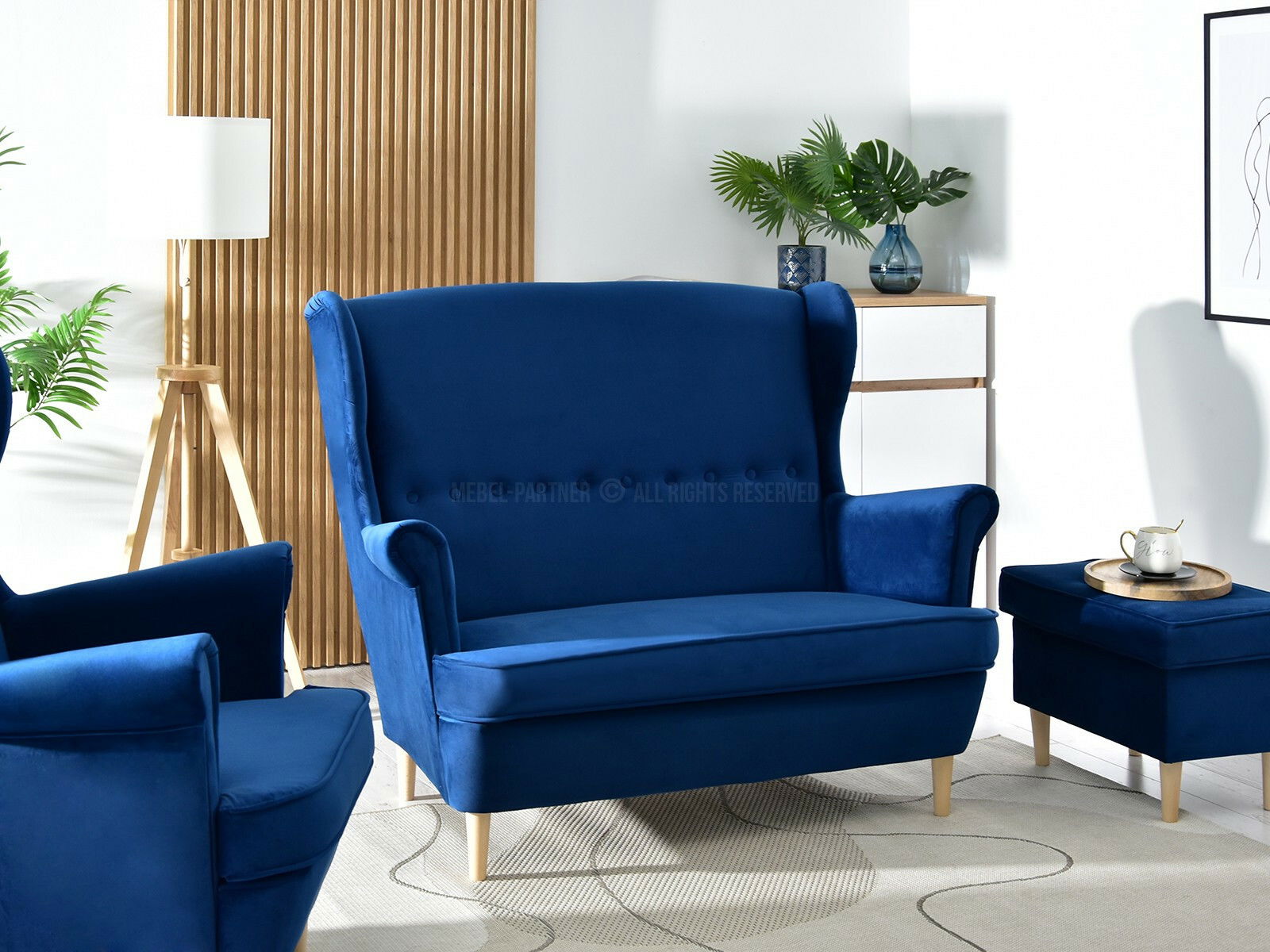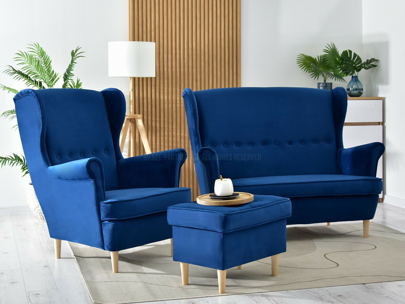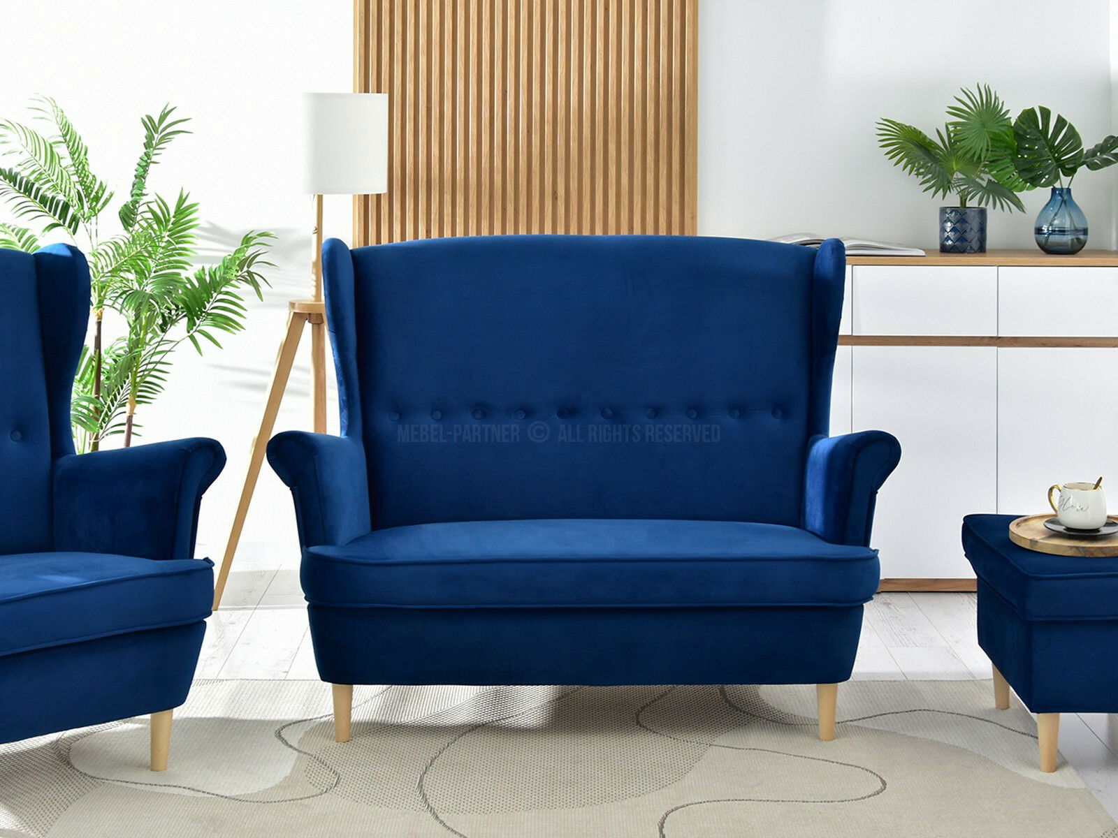 Pohovka dvousedačka ve tvaru ušák Muriera (tmavě modrá + buk)