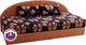 Rozkládací sedačka, 3-sed, najde své místo jak v obývacím pokoji, tak i dětském či studentském. Dá se využít i pro denní sezení, popřípadě po rozložení vznikne spací plocha až pro dvě osoby. Matrace je vyrobena z PUR pěny. Je čalouněná šenilem medové barvy s květinovým vzorem.