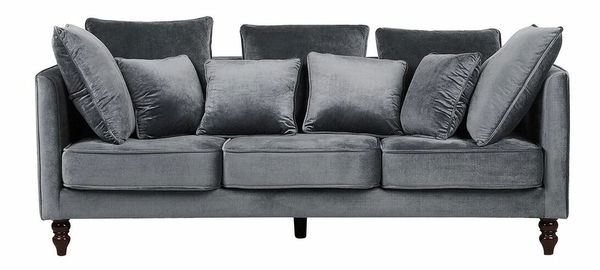 Tato sametová pohovka inspirovaná vintage stylem je splněným snem všech milovníků stylu nábytku z 50. let. Je poutavým středem pozornosti, nabízí maximální pohodlí a dá se snadno začlenit do jakéhokoli interiéru. Díky více volně položeným polštářům na opěradle vytváří perfektní místo pro lenošení a trávení volných chvil. Designové nohy pohovky jsou vyrobeny z dubového dřeva.