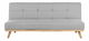 Tato třímístná pohovka je výborným řešením do menšího pokoje nebo do pokoje pro hosty. Minimalistický design je zvýrazněn jednoduchým prošíváním s knoflíčky a čalouněním v neutrální barvě. Světlý odstín nohou z kaučukového dřeva pohovce dodává nádech skandinávského stylu. Díky rozkládacímu mechanismu lze tuto pohovku velice jednoduše změnit na postel.