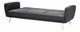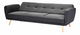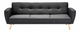 Moderní černá pohovka navržená v retro stylu je skvělým řešením do menších prostor. Široké a hrubé čalouněné sedátko nabízí pohodlné sezení pro tři osoby a díky rozkládacímu mechanismu lze jednoduše změnit na dvoulůžkovou postel. Pohovka má odolné látkové čalounění se stylovým prošíváním a zešikmené dřevěné nohy.