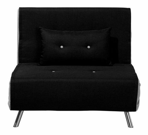 Tato kompaktní pohovka se hodí do jakéhokoli interiéru s omezeným prostorem a poskytuje pohodlné místo k sezení nebo spánek. Díky dvojitému rozkládacímu mechanismu a nastavitelnému opěradlu lze snadno změnit na postel pro jednu osobu. Stříbrné nohy jsou vyrobeny z oceli a zvýrazňují moderní vzhled nábytku. Pohovka má kvalitní látkové čalounění, kontrastní boční strany a ozdobné knoflíky a lze ji sladit s jakýmkoli moderním zařízením. Polštář má snímatelný potah, který usnadní čištění případných skvrn.
