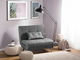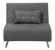 Tato kompaktní pohovka se hodí do jakéhokoli interiéru s omezeným prostorem a poskytuje pohodlné místo k sezení nebo spánek. Díky dvojitému rozkládacímu mechanismu a nastavitelnému opěradlu lze snadno změnit na postel pro jednu osobu. Stříbrné nohy jsou vyrobeny z oceli a zvýrazňují moderní vzhled nábytku. Pohovka má kvalitní látkové čalounění, kontrastní boční strany a ozdobné knoflíky a lze ji sladit s jakýmkoli moderním zařízením. Polštář má snímatelný potah, který usnadní čištění případných skvrn.