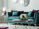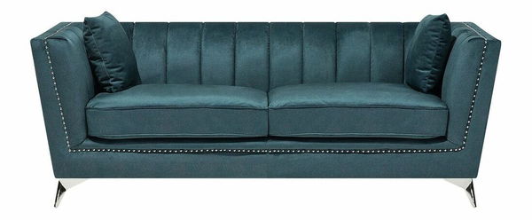Elegantní třímístná pohovka s tlustým čalouněním nabízí neuvěřitelný komfort a moderní design, který zkrášlí každý interiér. Vyniká krásným svislým prošíváním na opěradle a kovovým lemováním, které doplňují kovové nohy a stane se výrazným doplňkem jakékoli místnosti – od obývacího pokoje až po domácí knihovnu. Modrozelené sametové čalounění dokonale zvýrazňuje luxusní design pohovky.