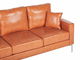 Klasická třímístná pohovka, která přináší eleganci do každého interiéru. Pohovka je čalouněna kvalitní umělou kůží v teplém odstínu hnědé a její sedací část a opěradlo s hrubou výplní zaručují maximální komfort během sezení. Dodatečné polštáře mají snímatelné potahy pro snazší čištění. Jednoduchý a elegantní design je doplněn stříbrnými kovovými nohami, které pohovce dodávají nádech industriálního stylu. Pohovka vypadá výborně především v minimalistických interiérech a loftech.