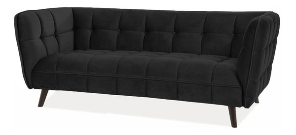 Pohovka III Carmine v černé barvě je ideálním řešením pro moderní obývací pokoje, kanceláře či stylové recepce. Její pevná dřevěná konstrukce zaručuje dlouhodobou stabilitu a odolnost, zatímco potah z kvalitní látky Bluvel 19 přináší příjemný sametový sametový vzhled