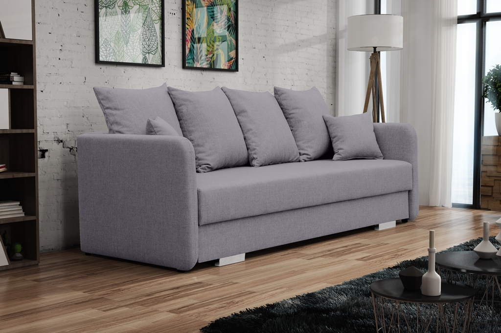 Díky rozkládacímu mechanismu typu automat se pohovka rychle přemění na pohodlné lůžko o rozměrech 197 x 147 cm, ideální pro příležitost. Praktický úložný prostor pod sedákem nabízí dostatek místa na uskladnění ložního prádla nebo sezónních doplňků, čímž pomáhá udržet interiéru. kombinovatelnost