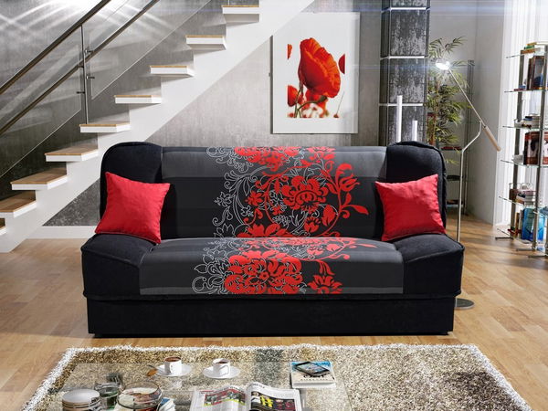 Elegantní rozkládací trojsed s netradičním rozvrstvením barev, který dodá Vašemu interiéru moderní vzhled. Rozkládá se povytažením přední části a sklopením zadní části do vodorovné polohy. Díky pružinovému mechanismu je to velmi jednoduché (klasický Klik-Klak systém). Sedačka obsahuje i praktický úložný prostor, který je pod sedací částí. Polštáře jsou v ceně sedačky. Pohodlné sezení zaručují vlnovcové pružiny s PUR pěnou T-25. Nožičky jsou z plastu v barvě wenge.