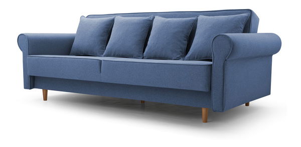 Pohovka trojsedačka Kathryx (modrá) o výšce 88 cm a hloubce 105 cm je ideálním doplňkem vašeho obývacího prostoru. Rám pohovky je vyroben z masivního dřeva a dřevotřísky, což zaručuje pevnost a trvanlivost. Sedadlová část obsahuje bonellovou pružinu o tloušťce drátu 2,4 mm a pěnou T30 o tloušťce 3 cm, čímž se dosahuje maximálního komfortu při sezení. Pohovka má také podpůrný mechanismus otevírání, na kterém lze pohovku snadno rozložit na plochu spaní 183 x 122 cm pomocí klik-klak systému. Díky svému modrému provedení je tato pohovka elegantním prvkem obývacího pokoje.