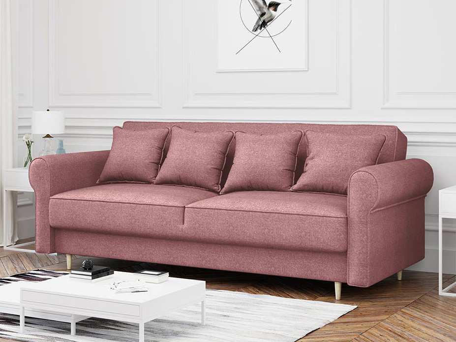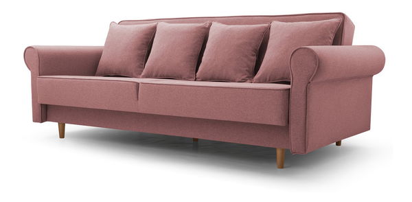 Pohovka trojsedačka Kathryx (růžová) má výšku 88 cm a hloubku 105 cm. Její nosnost je 52 kg, a je vyrobena z masivního dřeva a dřevotřísky. Sedák pohovky má bonellovou pružinu o tloušťce drátu 2,4 mm a pěnou T30 o tloušťce 3 cm. Tento typ pružiny zaručuje pohodlí a dlouhou životnost sedáku. Pohovka má podpůrný mechanismus otevírání a může se používat jako lůžko. Plocha na spaní je 183 x 122 cm a typ rozkladu je klik-klak. Díky svému barevnému odstínu růže je tato pohovka skvělou volbou do každého interiéru. Pro svoji robustnost a eleganci patří pohovka Kathryx k nejoblíbenějším produktům v kategorii trojsedaček.
