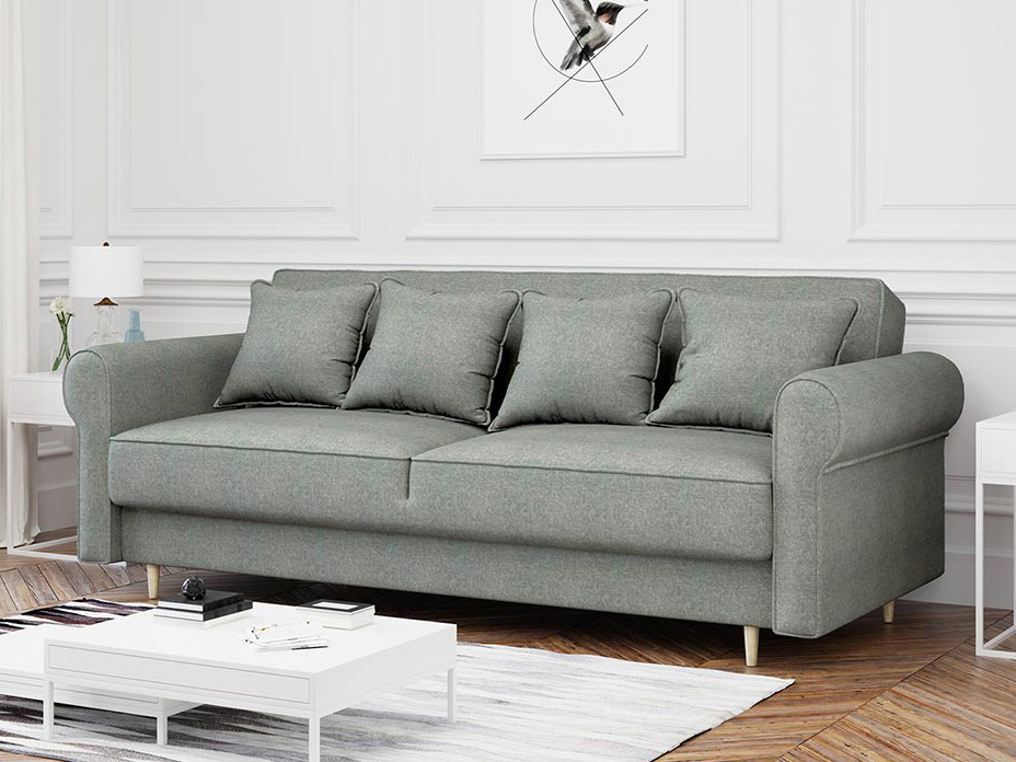 Pohovka trojsedačka Kathryx (světle šedá) je ideální volbou pro ty, kteří hledají pohodlné a stylové řešení pro svůj interiér. S výškou 88 cm a hloubkou 105 cm poskytuje dostatek místa pro tři lidi k sezení. Rám pohovky je vyroben z masivního dřeva a dřevotřísky, což zaručuje pevnost a stabilitu. Sedáková část má bonellové pružiny o tloušťce drátu 2,4 mm a pěnovou výplň T 30 o tloušťce 3 cm pro maximální komfort. Pohovka také obsahuje podpůrný mechanismus otevírání pro snadné rozložení. Plocha spaní pohovky je 183 x 122 cm a typ rozkladu je klik-klak. Tato pohovka bude perfektním doplňkem vašeho interiéru a poskytne vám pohodlné místo k sezení i spánek.