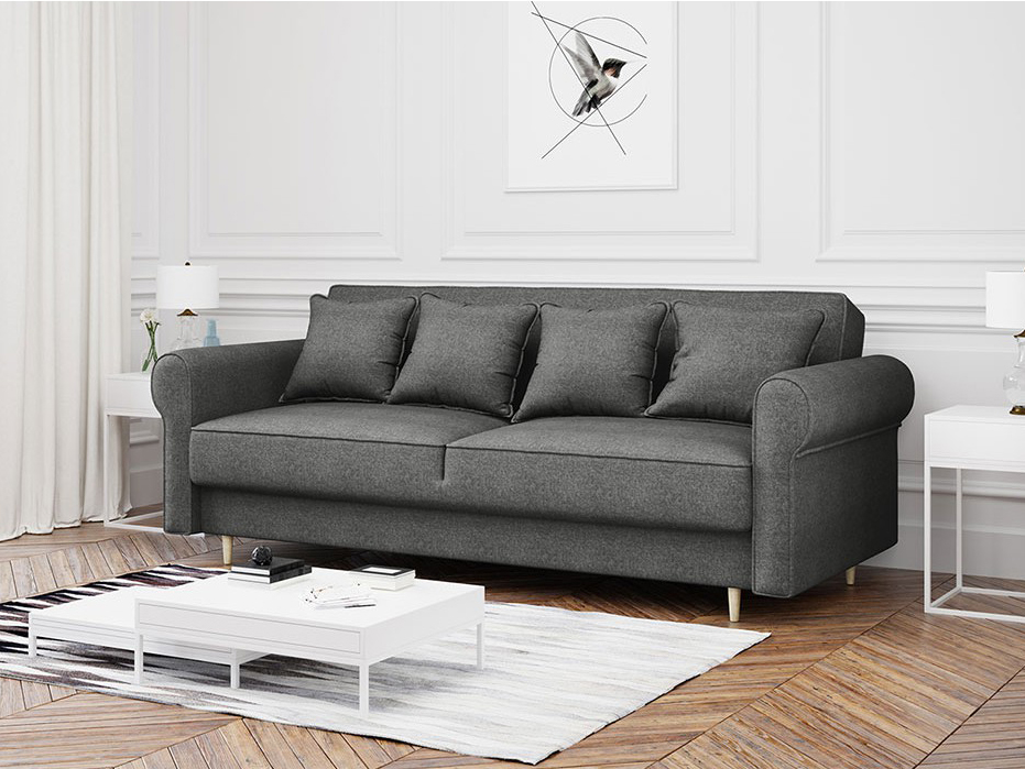 Třísedačka Kathryx (tmavě šedá) o výšce 88 cm a hloubce 105 cm je ideální volbou pro ty, kteří hledají pohodlí a kvalitu. Rám pohovky je vyroben z masivního dřeva a dřevotřísky, což zaručuje pevnost a dlouhou životnost. Sedadlová část je vybavena bonellovou pružinou o tloušťce drátu 2,4 mm a pěnou T30 o tloušťce 3 cm, což zajišťuje pohodlí i po delším sezení. Podpůrný mechanismus otevírání umožňuje snadné překlopení pohovky do režimu spánku. Plocha spaní 183 x 122 cm a typ rozkladu klik-klak jsou dalšími výhodami této trojsedačky. Vyzkoušejte si pohodlí a eleganci trojsedačky Kathryx v tmavě šedé barvě.