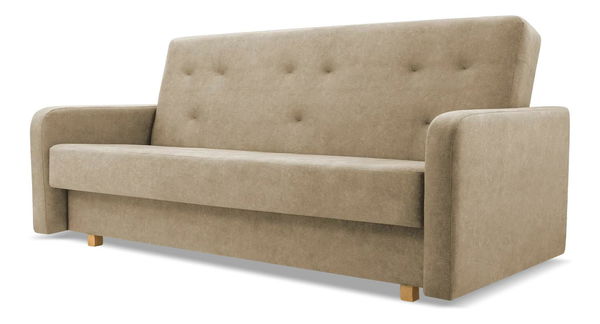 Pohovka trojsedačka Kothar (béžová) výška 92 cm hloubka 95 cm Muna 3 + Muna 6. Je vyrobena z kvalitního materiálu, který zaručuje pohodlí a trvanlivost. Rám pohovky je vyroben z masivního dřeva a dřevotřísky, což zajišťuje dostatečnou stabilitu. Sedadlová část je vybavena bonellovou pružinou o tloušťce drátu 2,4 mm a vysokoelastickou pěnou T 30 o tloušťce 2 cm, což zaručuje pohodlné a pevné sezení. Podpůrný mechanismus otevírání umožňuje snadné rozložení pohovky na plochu spaní 189 x 120 cm. Typ rozkladu je klik-klak. Tato pohovka je ideální pro každou domácnost a poskytne Vám komfort a relaxaci po náročném dni.