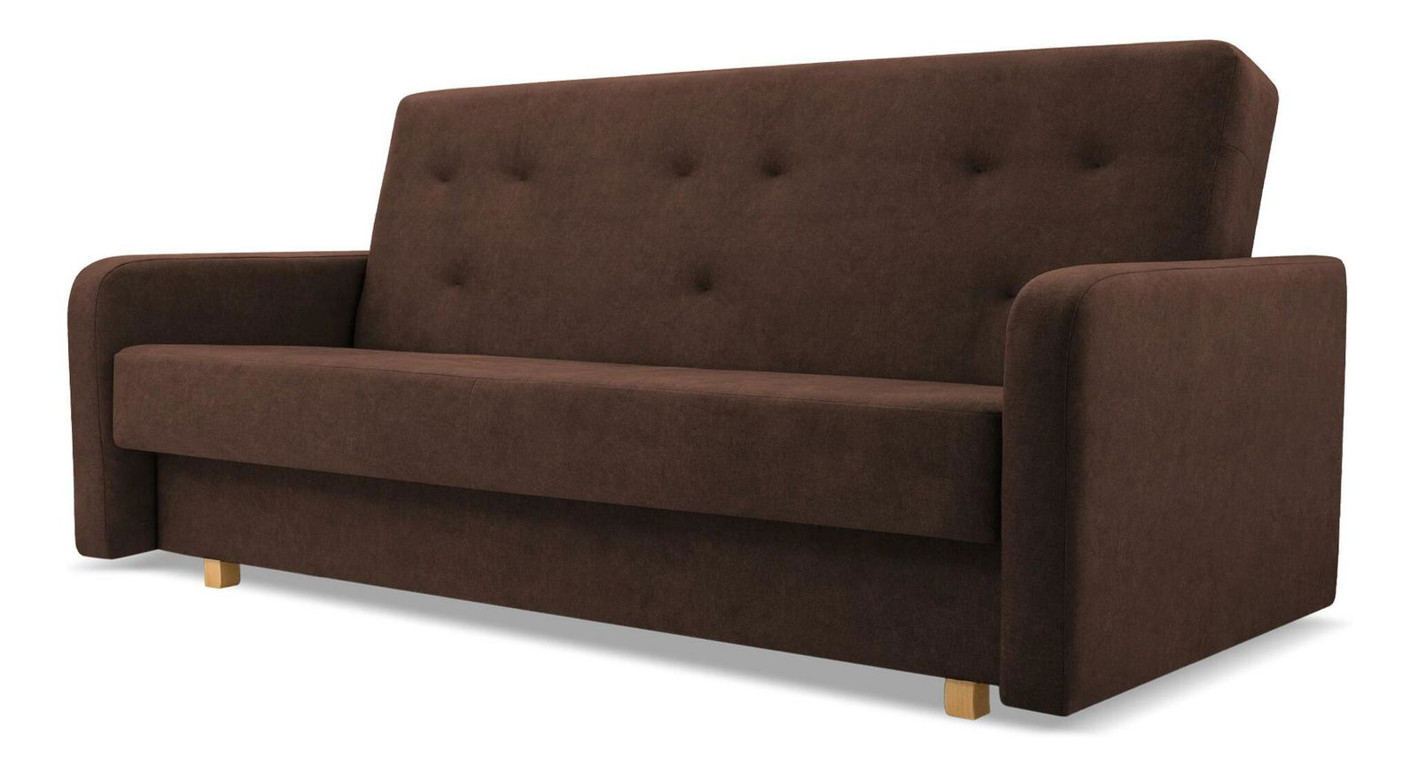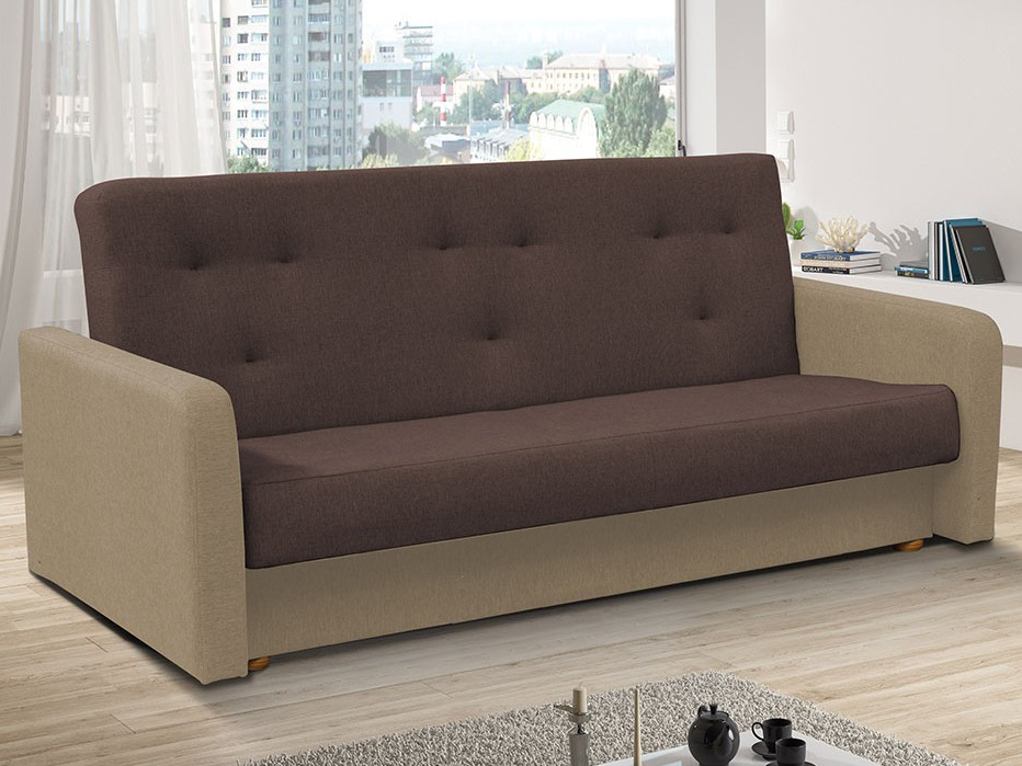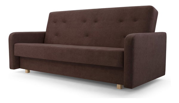 Pohovka trojsedačka Kothar (hnědá) o výšce 92 cm a hloubce 95 cm, nabízí pohodlné a kvalitní sezení pro celou rodinu. Rám pohovky je vyroben z masivního dřeva a dřevotřísky, což zaručuje dlouhou životnost a odolnost. Sedací část obsahuje bonellovou pružinu o tloušťce drátu 2,4 mm a vysokoelastickou pěnu T 30 o tloušťce 2 cm. Podpůrný mechanismus otevírání umožňuje snadné rozkládání pohovky na plochu spaní 189 x 120 cm typu klik-klak. Kvalitní materiál a detailní zpracování poskytují mimořádný komfort a spokojenost při používání. Pohovka trojsedačka Kothar je ideální volba pro každý obývací pokoj.