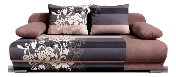 Moderní sedačka, 3-sed, vyniká krásným květinovým vzorem. Obývací pokoj již nebude nadále všední. Šedohnědé čalounění z mikro/bavlna pěkně ladí s kovovými nohami. Na sedačce se dá přespat. Systém automat zaručuje rychlé a jednoduché rozložení. Potřebné věci jako například povlečení umístěte do úložného prostoru.