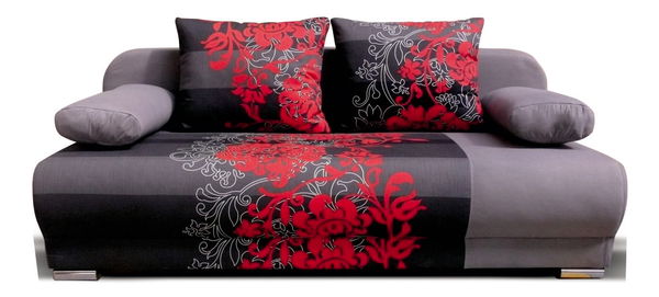 Moderní sedačka, 3-sed, vyniká krásným květinovým vzorem. Obývací pokoj již nebude nadále všední. Šedočerné čalounění z mikro/bavlna pěkně ladí s kovovými nohami. Na sedačce se dá přespat. Systém automat zaručuje rychlé a jednoduché rozložení. Potřebné věci jako například povlečení umístěte do úložného prostoru.
