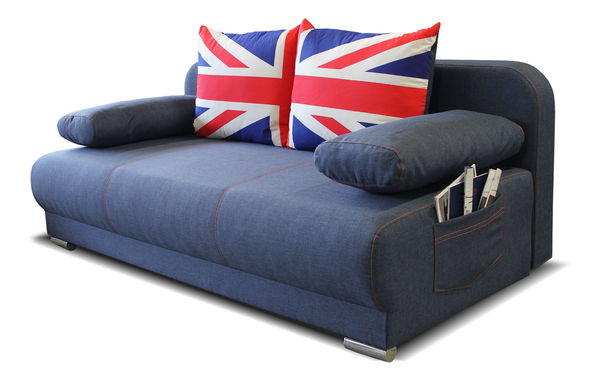 Interiér obývacího pokoje ozvláštněte velmi jednoduše s tímto designově zajímavým 3-sedem. Design vystihují zaoblené tvary, kontrastní prošívání na pohovce a polštáře se vzorem britské vlajky. Určitě oceníte i praktické řešení tohoto 3-sedu. Víte ho velmi jednoduše rozložit, čímž vytvoříte plochu na spaní. Do úložného prostoru se vám vejde ložní prádlo a jiné doplňky. Na boku 3-sedu se nachází i praktická kapsa na noviny a časopisy. 3-sed má kovové nohy.