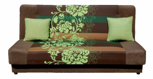 Praktická rozkládací sedačka - 3-sed s pěkným vzorem zeleného květu má úložný prostor a je snadno rozložitelná jako plocha na spaní díky systému Klik-Klak. Roztahovací sedačka je vhodná zejména do menších obývacích nebo studentských pokojů.