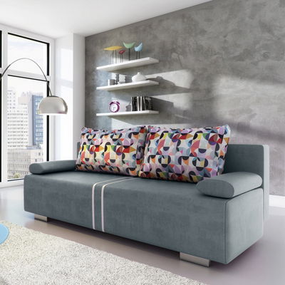 Pohovka je čalouněna kvalitní látkou Aston 11, která je měkká, elastická a připomíná plyš, přičemž je zároveň odolná vůči oděru a nevybledne ani při dlouhodobém vystavení světlu. Výplň z pěny T-30 spolu s pružinami typu Faliste zajišťuje pohodlné sezení a dlouhou životnost nábytku. Praktickým doplňkem je úložný prostor, který pomůže udržet pořádek v domácnosti a uschovat například přikrývky či polštáře.